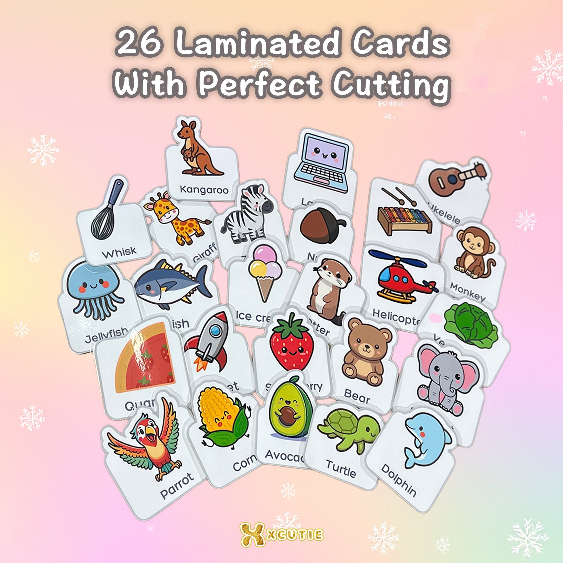 We’ve brought our illustrations to life! Every character and item in our flash cards—from the Avocado to the Xylophone—is featured on our YouTube channel.