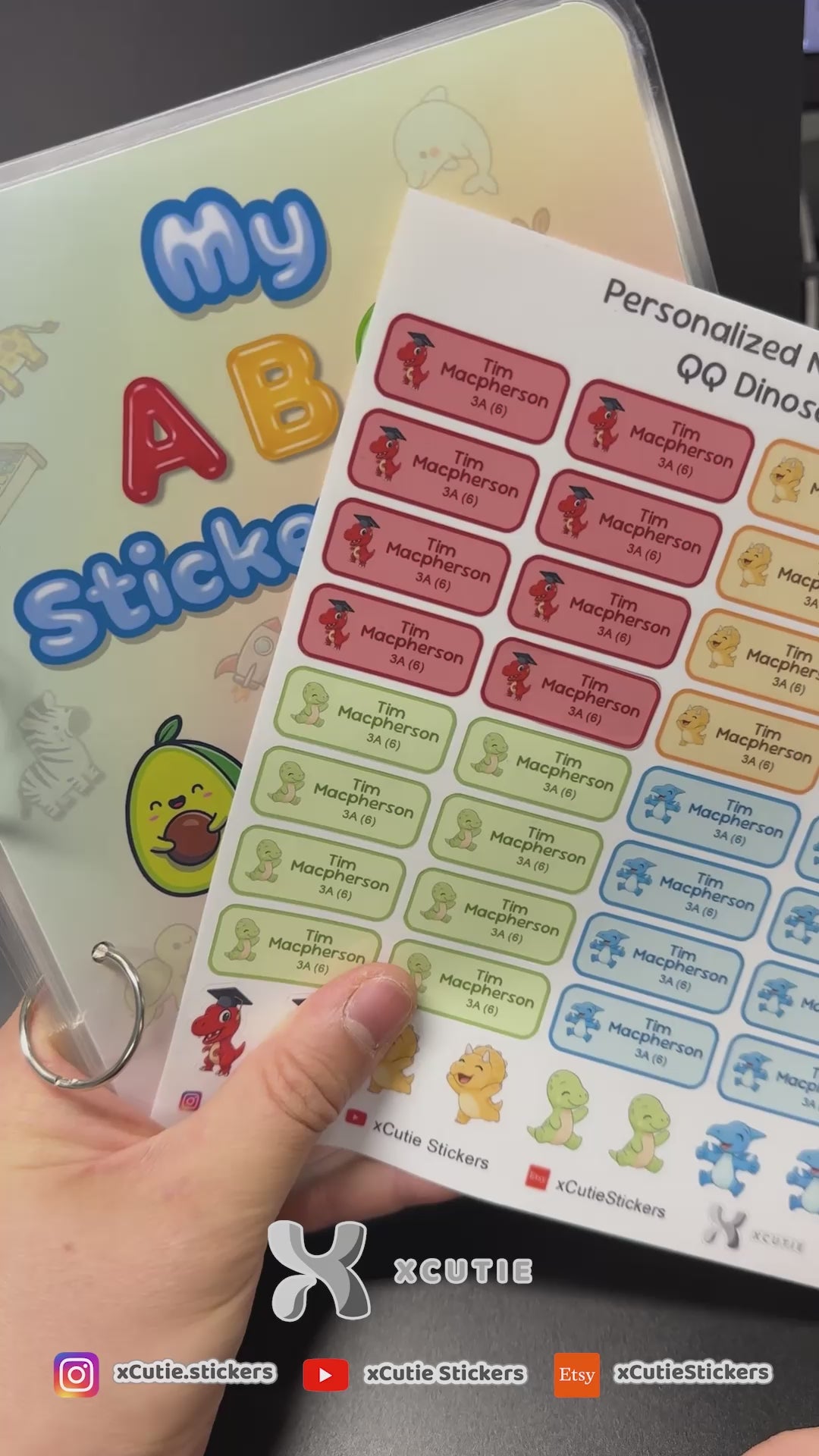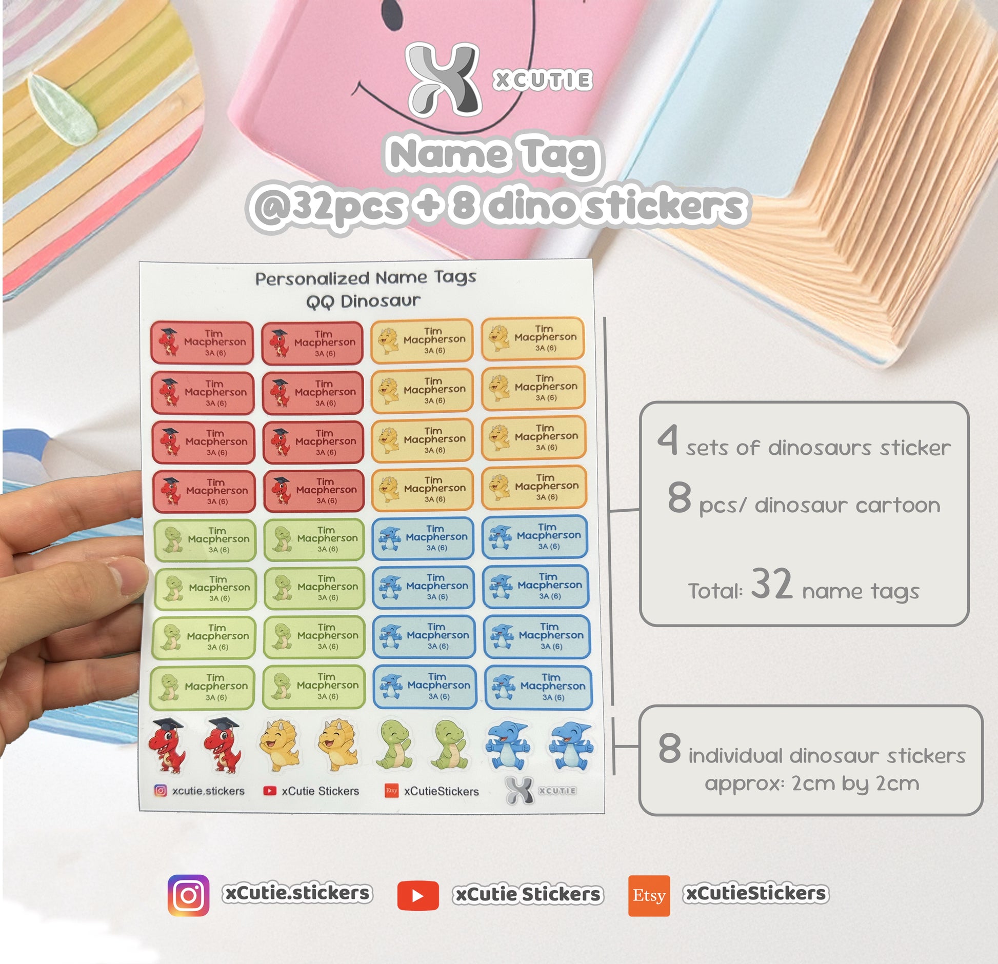 Make school days more fun and organized with these adorable Personalized QQ Dinosaur Name Tags! Perfect for kids’ books, stationery, water bottles, lunch boxes, folders, and classroom items. Designed with xCutie’s signature cute dinosaur characters, each pack includes 32 waterproof name labels PLUS 8 bonus dinosaur stickers for extra decoration fun.