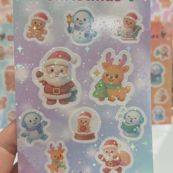 This set features 10 colorful, high-quality stickers including Santa Claus, reindeer, gingerbread characters, snowmen, and more — all in a warm, kawaii illustration style perfect for kids, teens, and anyone who loves cute holiday designs.