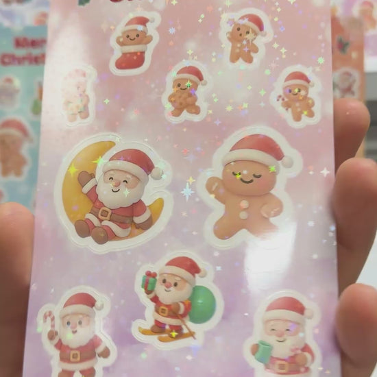 This set features 10 colorful, high-quality stickers including Santa Claus, reindeer, gingerbread characters, snowmen, and more — all in a warm, kawaii illustration style perfect for kids, teens, and anyone who loves cute holiday designs.