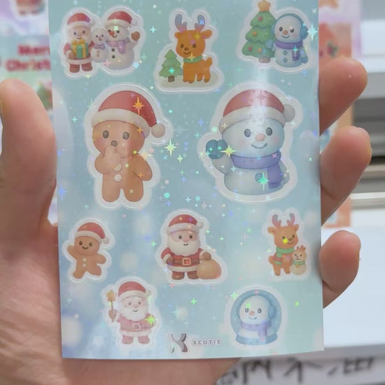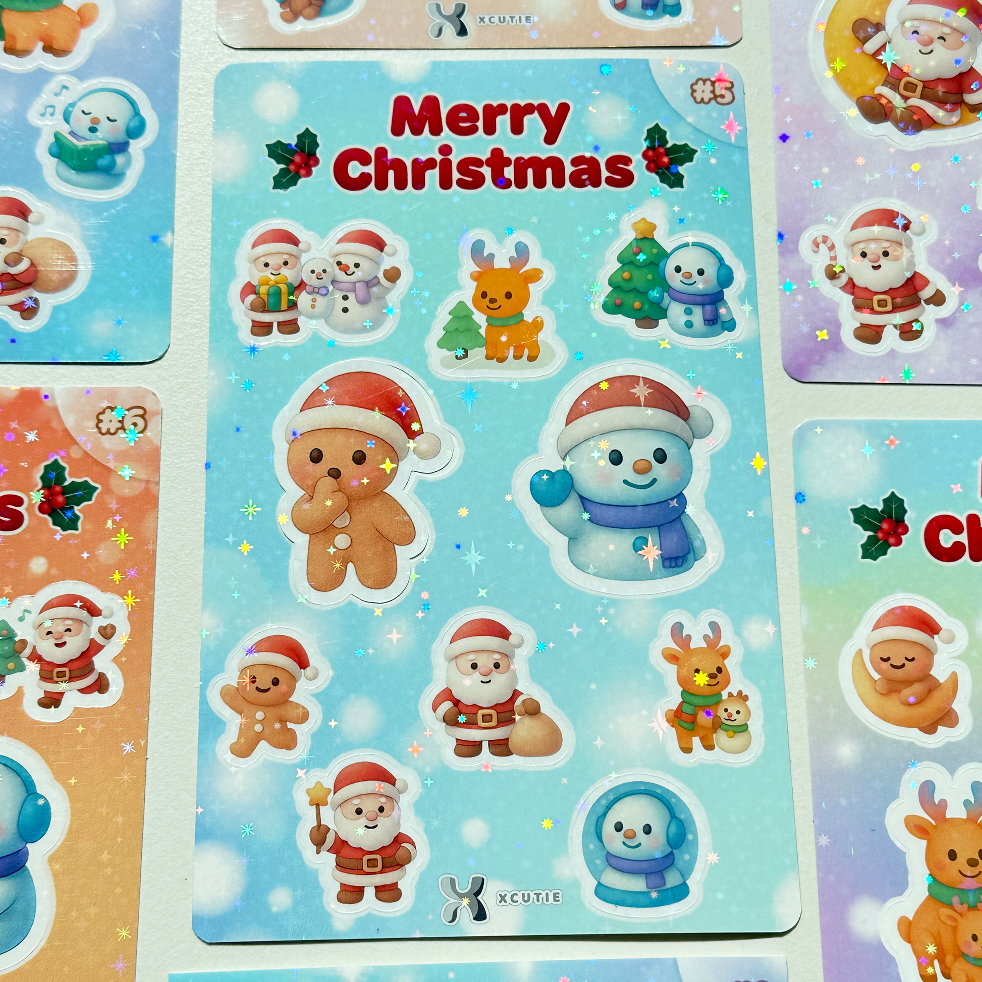 This set features 10 colorful, high-quality stickers including Santa Claus, reindeer, gingerbread characters, snowmen, and more — all in a warm, kawaii illustration style perfect for kids, teens, and anyone who loves cute holiday designs.