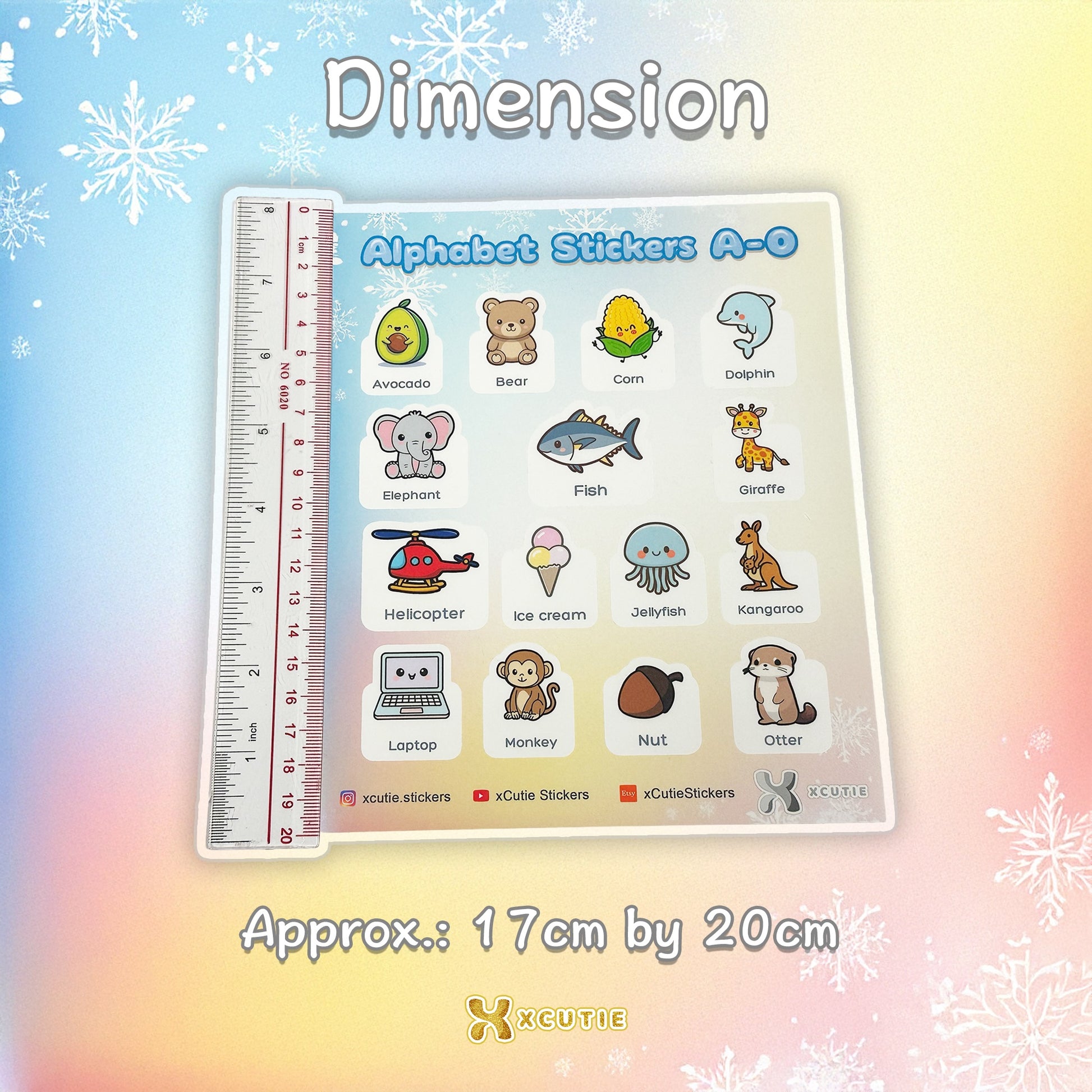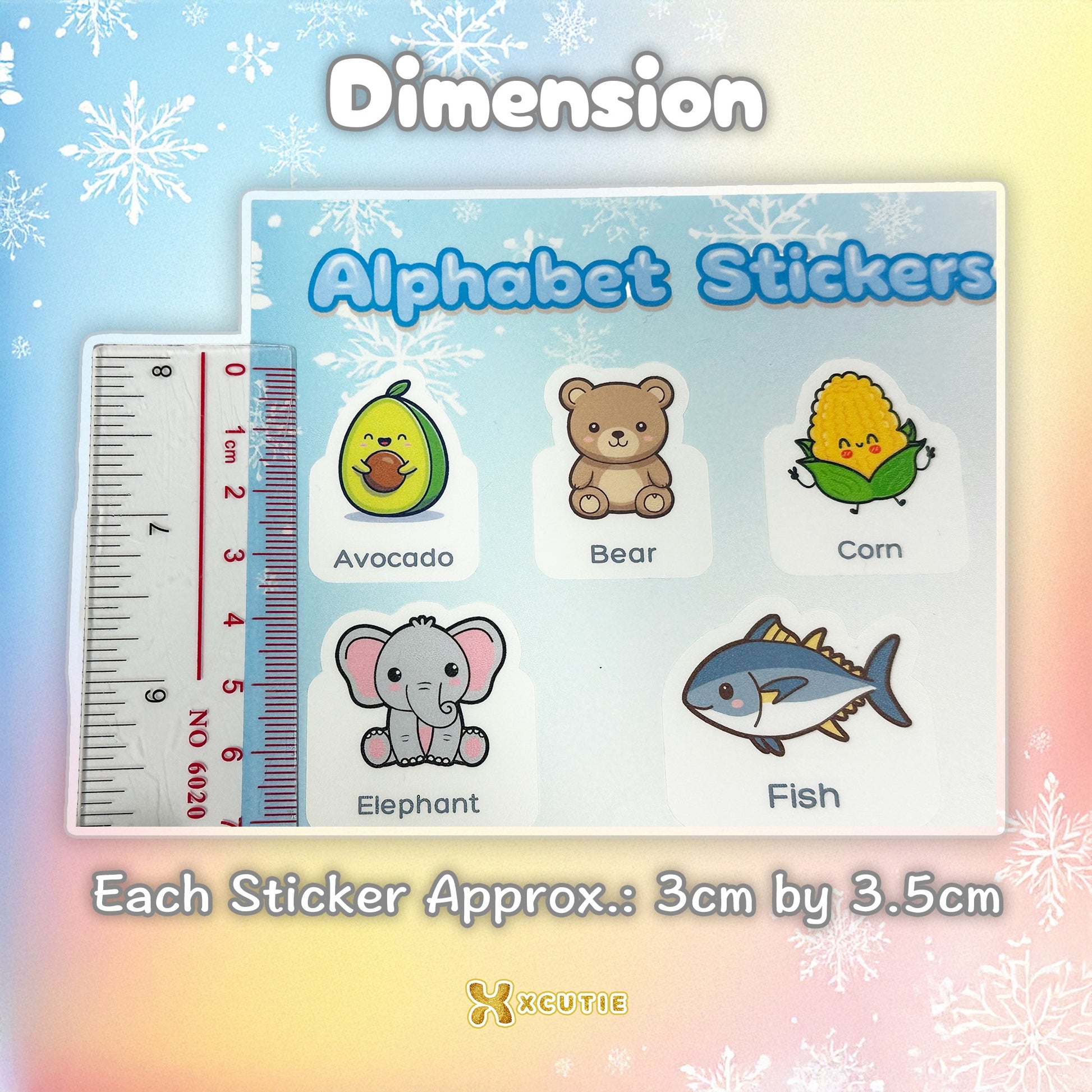 • 26 張可愛的詞彙貼紙(每個字母一張)